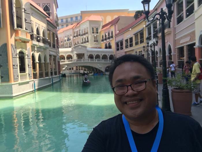 The author takes a selfie at Venice Grand Canal Mall's grand canal. (Mark Rabago)