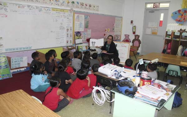 Dr. Clare Camacho, a consultant with the Public School System and literacy coach assigned to Tinian, was on campus and read to TES students in Kindergarten up to the fourth grade.