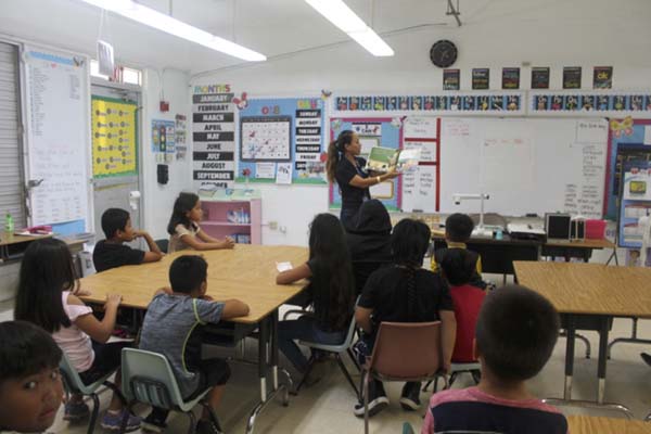 One of TES’ own parent and teacher, Monica Sanchez, read to the 3B class. A parent and school counselor, Maryann Dela Cruz, read to the Grade 5A. Michelle Quichocho, an AmeriCorps student from Tinian Junior Senior High School, read to the 1B class. Rose Lyn Balagtas, another student from the Tinian Junior Senior High School’s co-op program, read to 3A. Dr. Rita Sablan, former education commissioner and literacy coach for Tinian Elementary School, was also on campus and read to grades 2A and 4A. Tinian High School teacher and parent, Regina Palacios, read for 1A while another Tinian High School teacher and parent, Frances Santos, read to 2B.