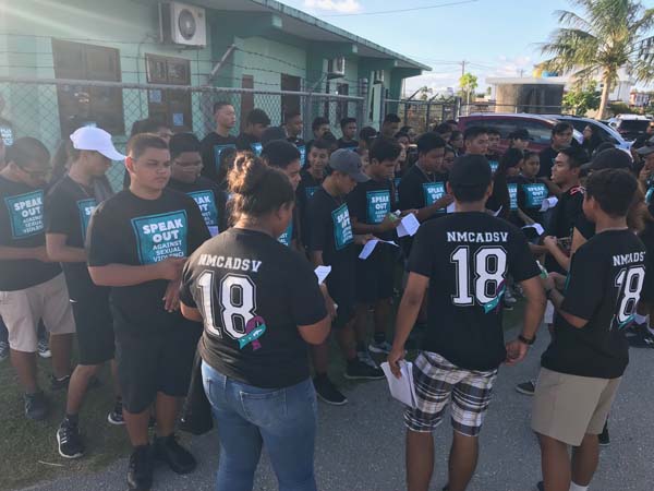 The Saipan Southern High School Junior Reserve Officers Training Corps poses for a photo during the Walk and Roll against sexual assault last Wednesday in Chalan Kanoa.