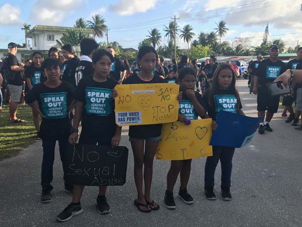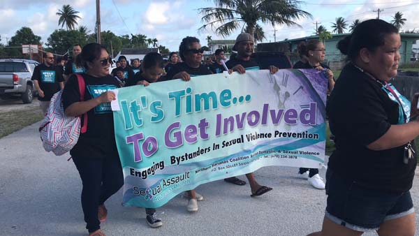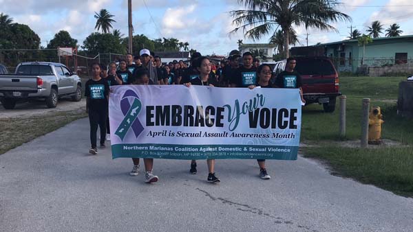 This year’s Walk and Roll theme is “Embrace Your Voice” and the banner is held up front during the Walk and Roll against sexual assault last Wednesday in Chalan Kanoa.