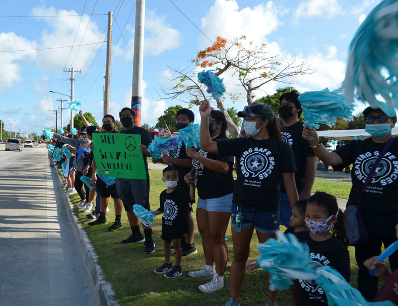 Participants in the Walk, Roll & Wave Against Sexual Violence, organized by the Northern Marianas Coalition Against Domestic & Sexual Violence, hold a walk and waving campaign on April 30, 2021, at the Garapan Fishing Base. This event was organized to help raise awareness on sexual violence during Sexual Assault Awareness Month in April. Photos taken from the Facebook page of the Northern Marianas Coalition Against Domestic & Sexual Violence. Used with permission. (NORTHERN MARIANAS COALITION AGAINST DOMESTIC & SEXUAL VIOLENCE)