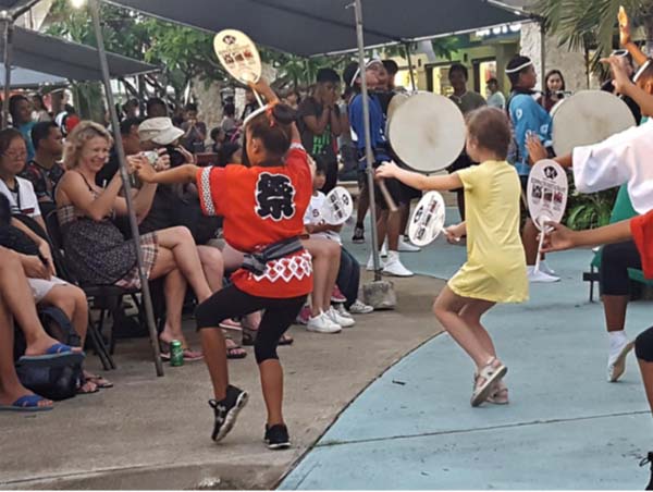 Members of the audience join the final number of the Saipan Awaodori dance troupe during the #MarianasSTRONG Year-end Celebration, on Dec. 29, 2018, in Garapan. The celebration included the Moichitsuki Festival, an annual Japanese celebration marking the new year.