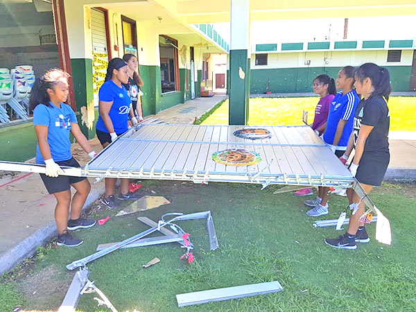 Tenorio and Itaas were among the 14 players and four Northern Mariana Islands Football Association staff members who conducted a cleanup drive at the Koblerville Elementary School last Saturday. KES was one of the schools hit by the Category 5 typhoon late last month.