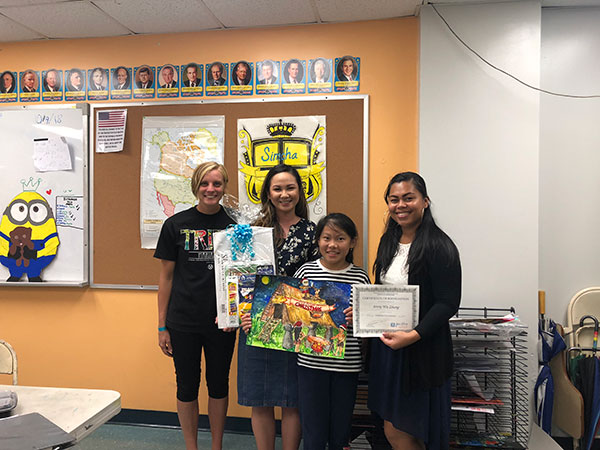 Two students got a surprise visit at their schools last week by Pacifica Insurance Underwriters, Inc. president Shirley Sablan and marketing coordinator Samantha Sikayun after winning first place in the 2018 Pacifica Art Contest.